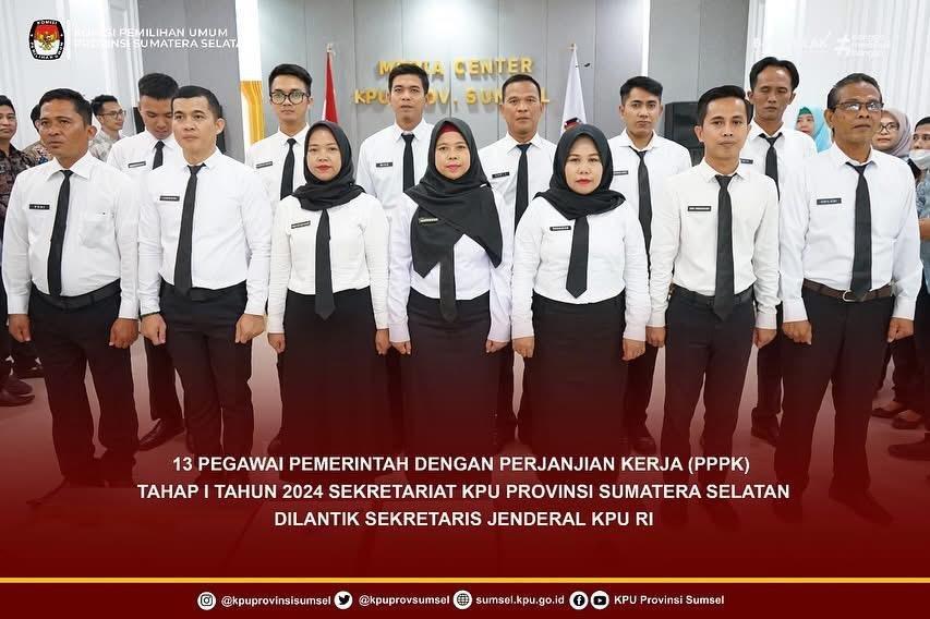 #Temanpemilih KPU Provinsi Sumatera Selatan mengucapkan selamat dan sukses kepada 13 Pegawai Pemerintah dengan Perjanjian Kerja (PPPK) Sekretariat KPU Provinsi Sumatera Selatan yang telah resmi dilantik langsung oleh Sekretaris Jenderal KPU RI, Jum'at (23/5/2025).