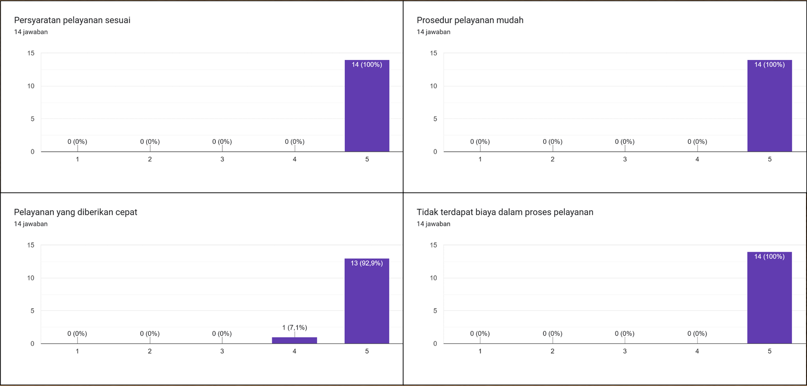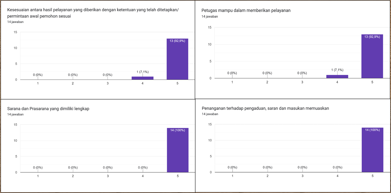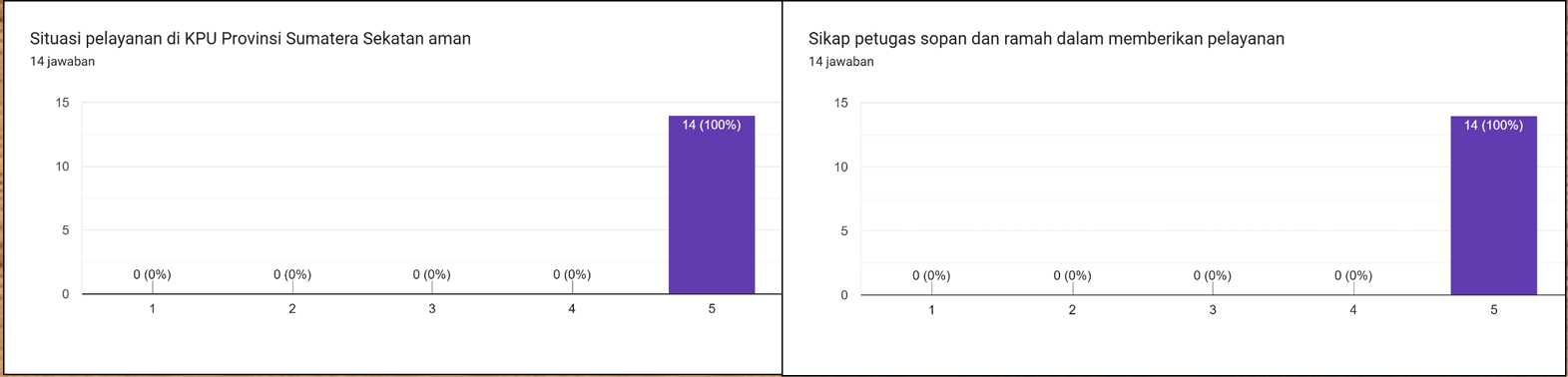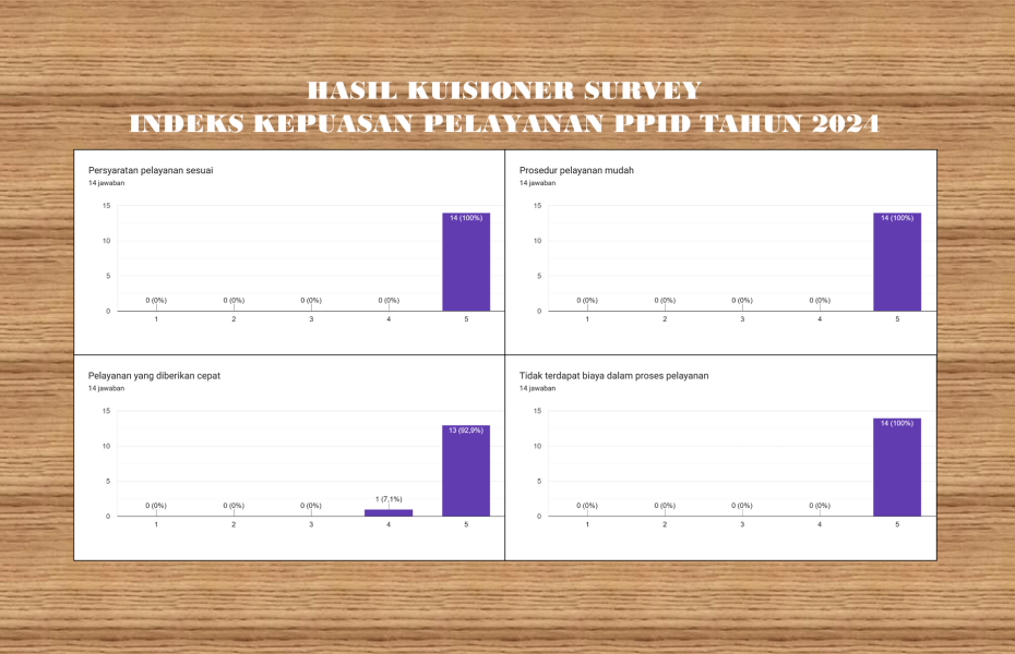 Pada tahun 2020, untuk pertama kalinya KPU Provinsi Sumatera Selatan membuat Survey Kepuasan Pelayanan PPID dengan menggunakan lembar survey yang dibagikan kepada 1 orang pemohon informasi melalui Helpdesk PPID dan 1 orang pemohon informasi melalui e-PPID. Pada tahun 2022, KPU Provinsi Sumatera Selatan baru melakukan inovasi berupa link survey di di google formulir yaitu https://bit.ly/surveykepuasanpelayananPPID. Link ini dibagikan kepada setiap pemohon informasi yang datang di Helpdesk PPID maupun masuk melalui e-PPID dan WA Helpdesk PPID. Namun tidak semua pemohon yang dikirim link survey tersebut bersedia meluangkan waktunya untuk mengisi survey. Selama tahun 2024 ini hanya ada 14 pemohon yang bersedia meluangkan waktunya untuk mengisi Survey Indeks Kepuasan Pelayanan PPID.