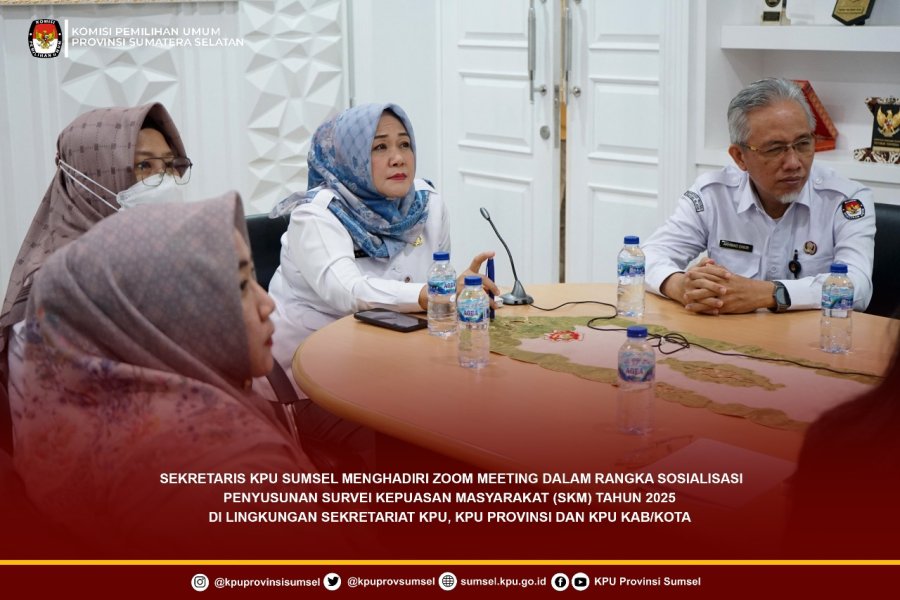 Sekretaris KPU Sumsel, Ibu Haslinda didampingi Kabag Rendatin, Bapak Ahmad Zakir dan Kasubbag Perencaan, Ibu Dwi Utami menghadiri zoom meeting dalam rangka sosialisasi penyusunan Survei Kepuasan Masyarakat (SKM) tahun 2025 di lingkungan Sekretariat Jenderal KPU, KPU Provinsi dan KPU Kab/Kota, Kamis (28/8/2025).