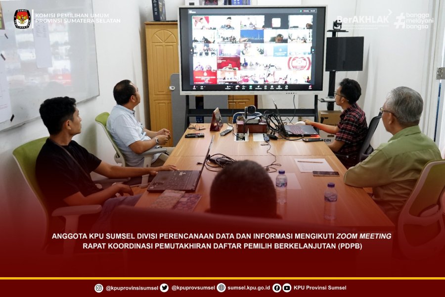 #Temanpemilih Anggota KPU Sumsel Divisi Perencanaan Data dan Informasi, Bapak Abu Yamin didampingi Kabag Rendatin Bapak Akhmad Zakir beserta jajaran, mengikuti zoom meeting dalam rangka rapat koordinasi pemutakhiran daftar pemilih berkelanjutan (PDPB) bersama KPU RI, Selasa (9/9/2025).