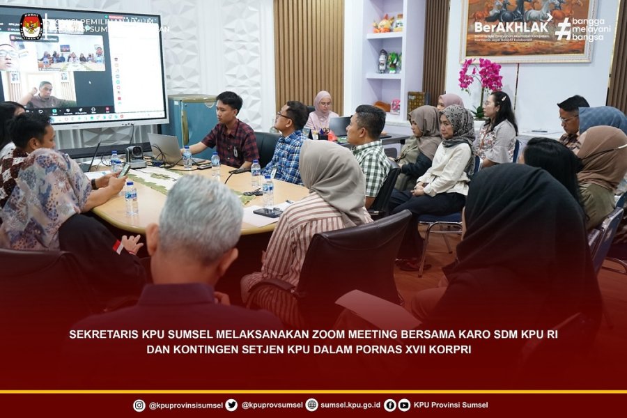 #Temanpemilih Sekretaris KPU Provinsi Sumatera Selatan, Ibu Haslinda didampingi Pejabat Manajerial serta jajaran melaksanakan zoom meeting dalam rangka rapat koordinasi persiapan partisipasi dalam Pekan Olahraga Nasional (PORNAS) XVII KORPRI Tahun 2025 bersama Kepala Biro SDM KPU RI, Ibu Yuli Hertaty serta para kontingen Sekretariat Jenderal Komisi Pemilihan Umum (KPU), Kamis (11/9/2025).