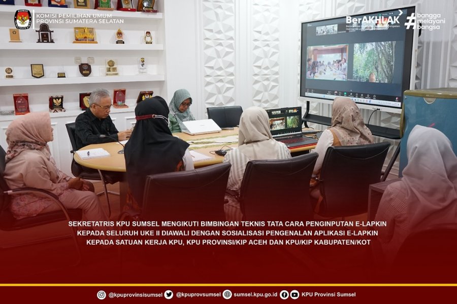 #Temanpemilih Sekretaris KPU Sumsel, Ibu Haslinda didampingi Kabag Perencanaan Data dan Informasi, Bapak Akhmad Zakiir, Kasubbag Perencanaan, Ibu Dwi Utami beserta Staf Subbagian Perencanaan KPU mengikuti Bimbingan Teknis Tata Cara Penginputan E-Lapkin kepada seluruh UKE II diawali dengan Sosialisasi pengenalan Aplikasi E-Lapkin kepada Satuan Kerja KPU, KPU Provinsi/KIP Aceh dan KPU/KIP Kabupaten/Kota dengan Biro Perencanaan dan Organisasi, KPU RI, Pusat Data dan Teknologi Informasi KPU RI serta Inspektorat KPU RI, melalui Zoom Meeting, Senin (15/09/2025)