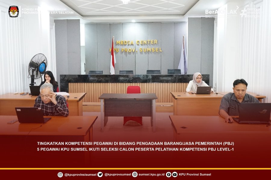 #Temanpemilih Dalam rangka meningkatkan kompetensi pegawai di bidang Pengadaan Barang/Jasa Pemerintah (PBJ) di lingkungan KPU Provinsi dan KPU Kabupaten/Kota Tahun 2025, 5 Pegawai di Lingkungan Sekretariat KPU Provinsi Sumatera Selatan mengikuti Kegiatan Seleksi Calon Peserta Pelatihan Kompetensi PBJ Level-1 bagi Pegawai di Lingkungan KPU Provinsi dan KPU Kabupaten/Kota Tahun 2025 melalui Zoom Meeting yang dilaksanakan oleh KPU RI bekerja sama dengan Lembaga Kebijakan Pengadaan Barang/Jasa Pemerintah (LKPP), Selasa (16/09/2025)