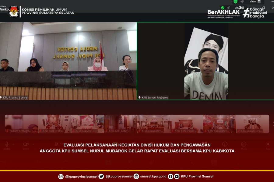 #Temanpemilih Anggota KPU Sumsel Divisi Hukum dan Pengawasan, Bapak Nurul Mubarok, Kepala Sub Bagian Hukum, Ibu Aryani Meiranda Sari dan Operator Sub Bagian Hukum mengadakan Rapat Evaluasi Pelaksanaan Kegiatan Divisi Hukum dan Pengawasan dengan KPU Kabupaten/Kota se-Sumatera Selatan dengan mengundang Anggota Divisi Hukum dan Pengawasan, Kepala Sub Bagian Teknis dan Hukum serta Operator Hukum KPU Kabupaten/kota se-Sumsel secara daring, Selasa (16/09/2025).