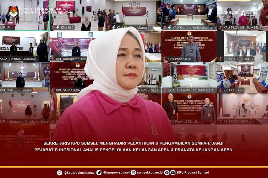 #Temanpemilih Penata Tingkat I KPU Kabupaten Ogan Komering Ilir, Sry Sudarwaty; Penata Muda Tingkat I KPU Kabupaten OKU Selatan, Indah Muhsinah; dan Penata Muda Tingkat I KPU Kabupaten Penukal Abab Lematang Ilir, Fetty Apriliya BR Tarigan dilantik dan diambil sumpah/ janji sebagai Pejabat Fungsional Analis Pengelolaan Keuangan APBN dan Pranata Keuangan APBN di lingkungan Sekretariat Jenderal KPU Tahun 2025 secara hybrid, Rabu (17/9/2025).