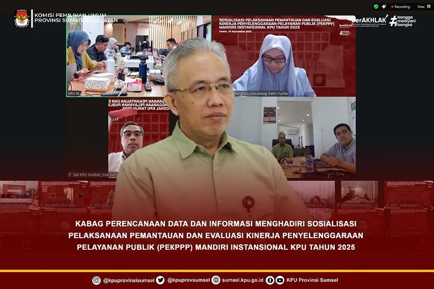 #Temanpemilih Kabag Perencanaan, Data dan Informasi, Bapak Akhmad Zakir didampingi Kasubbag Perencanaan, Ibu Dwi Utami mengikuti Sosialisasi dalam rangka Pelaksanaan Pemantauan dan Evaluasi Kinerja Penyelenggaraan Pelayanan Publik (PЕКРРР) Mandiri Instansional KPU Tahun 2025 di Lingkungan Sekretariat KPU Provinsi/KIP Aceh dan Sekretariat KPU/KIP Kabupaten/Kota melalui Zoom Meeting, Kamis (18/09/2025)