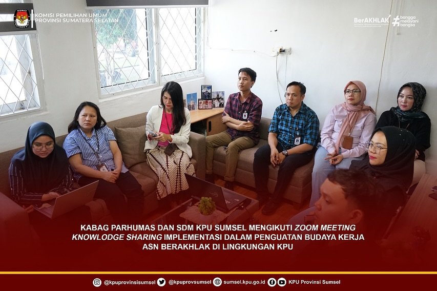 #Temanpemilih Kabag Partisipasi Hubungan Masyarakat dan SDM, Bapak Akhmad Ferdian didampingi oleh Kasubbag SDM, Ibu Diana Sari, Beserta staf mengkuti Zoom Meeting Knowledge Sharing Implementasi dalam penguatan Budaya Kerja ASN BerAKHLAK di Lingkungan Sekretariat Jenderal KPU, Sekretariat KPU Provinsi dan Sekretariat KPU Kabupaten / Kota. Kamis (25/09/2025)