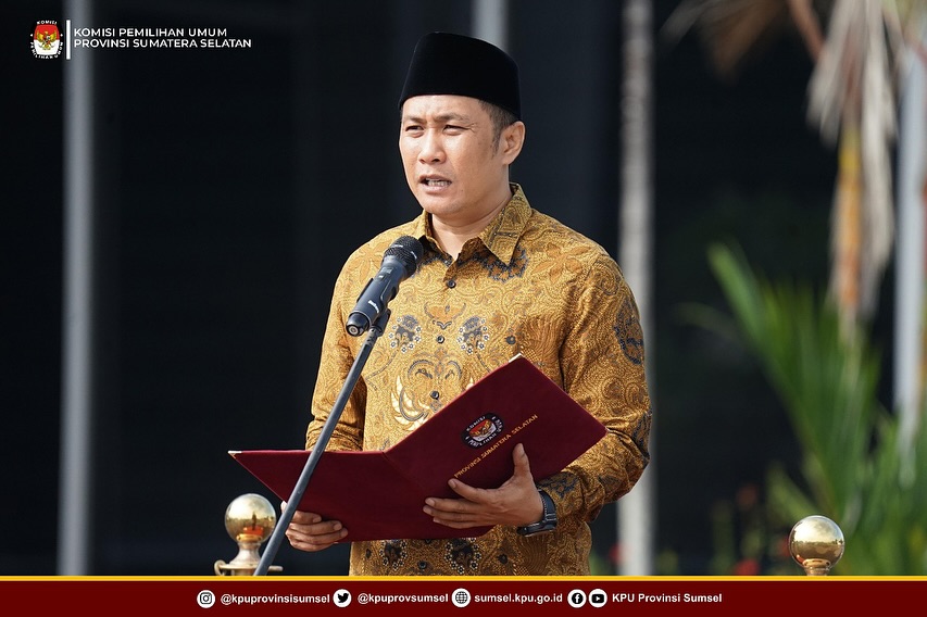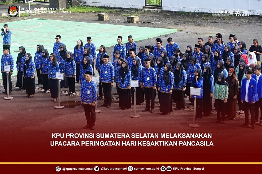 #Temanpemilih Ketua KPU Provinsi Sumatera Selatan bertindak sebagai Inspektur upacara peringatan hari kesaktian pancasila di lingkungan KPU Sumsel, Rabu (1/10/2025).