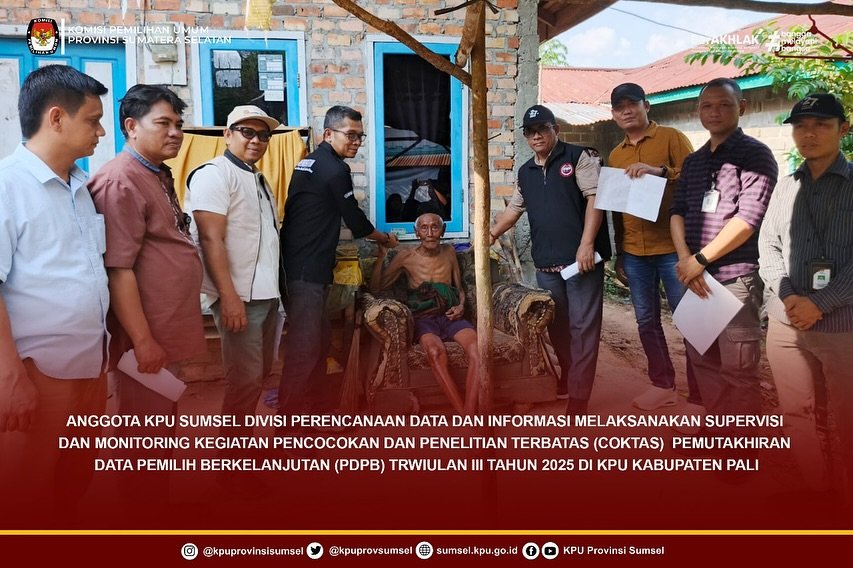 #Temanpemilih Anggota KPU Sumsel Divisi Perencanaan Data dan Informasi, Bapak Abu Yamin didampingi Kasubbag Data dan Informasi, Bapak M. Rizki Andriantama serta staf melaksanakan supervisi dan monitoring pencocokan dan penelitian terbatas (Coktas) Pemutakhiran Data Pemilih Berkelanjutan (PDPB) Triwulan III di Kabupaten Penukal Abab Lematang Ilir (PALI), Kamis (25/9/2025).