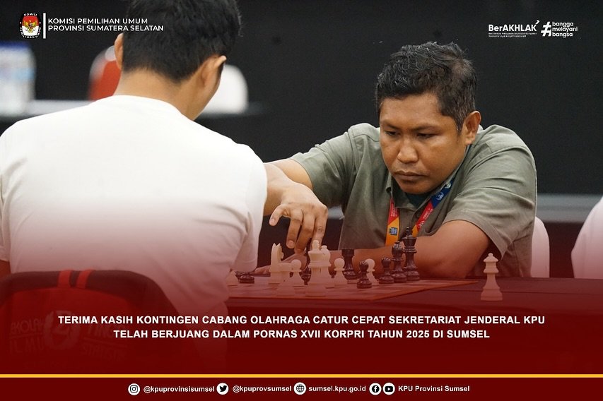 Kontingen Catur Cepat Perorangan Putra Sekretariat Jenderal KPU, Ikmin Aprianto berjuang dalam Pornas KORPRI XVII Tahun 2025 di Sumsel