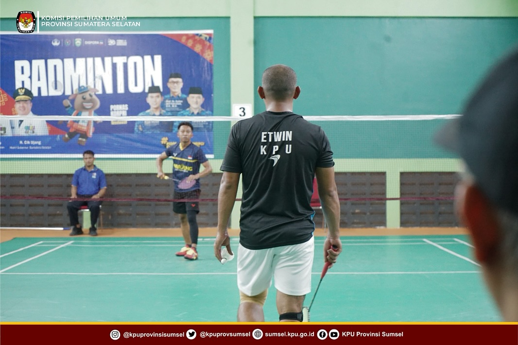 Kontingen Atlet Cabor Bulu Tangkis Perorangan Putra Setjen KPU, Etwin Juanda berjuang pada kejuaraan Pornas KORPRI ke XVII Tahun 2025 di Sumatera Selatan