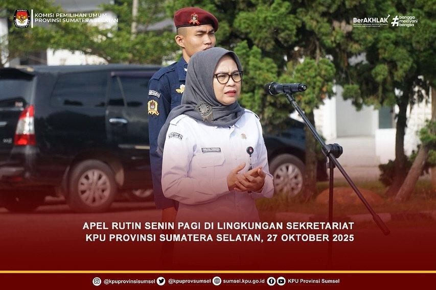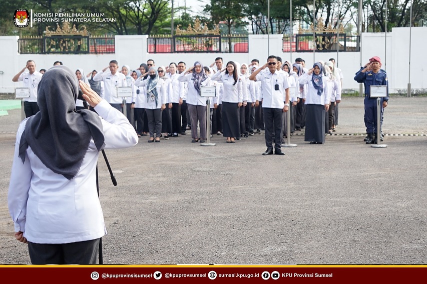 KPU Provinsi Sumatera Selatan melaksanakan apel rutin Senin Pagi di Lingkungan KPU Sumsel, (27/10/2025)