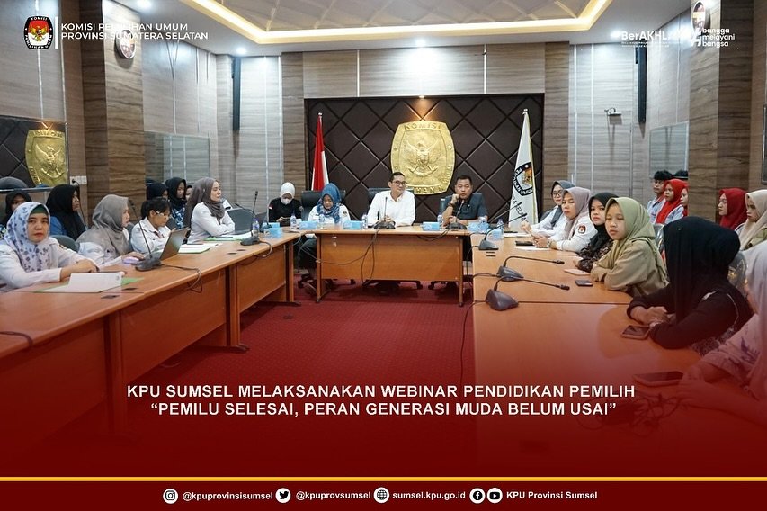 KPU Sumsel melaksanakan webinar pendidikan pemilih yang bertajuk Pemilu Selesai, Peran Generasi Muda belum Usai.