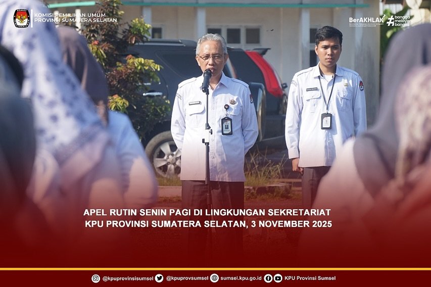 #Temanpemilih,KPU Provinsi Sumatera Selatan melaksanakan apel rutin senin pagi di lingkungan sekretariat KPU Sumsel, (3/11/2025)