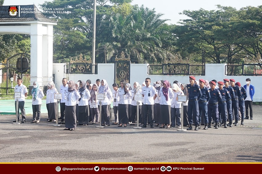 KPU Provinsi Sumatera Selatan melaksanakan apel rutin senin pagi di lingkungan sekretariat KPU Sumsel