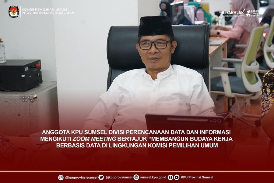 #Temanpemilih Anggota KPU Sumsel Divisi Perencanaan Data dan Informasi, Bapak Abu Yamin didampingi Kabag Rendatin serta jajaran mengikuti zoom meeting bertajuk "Membangun Budaya Kerja Berbasis Data di Lingkungan KPU", Jum'at (14/11/2025).