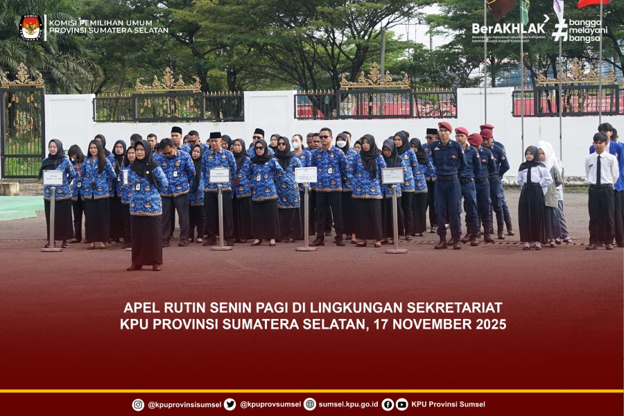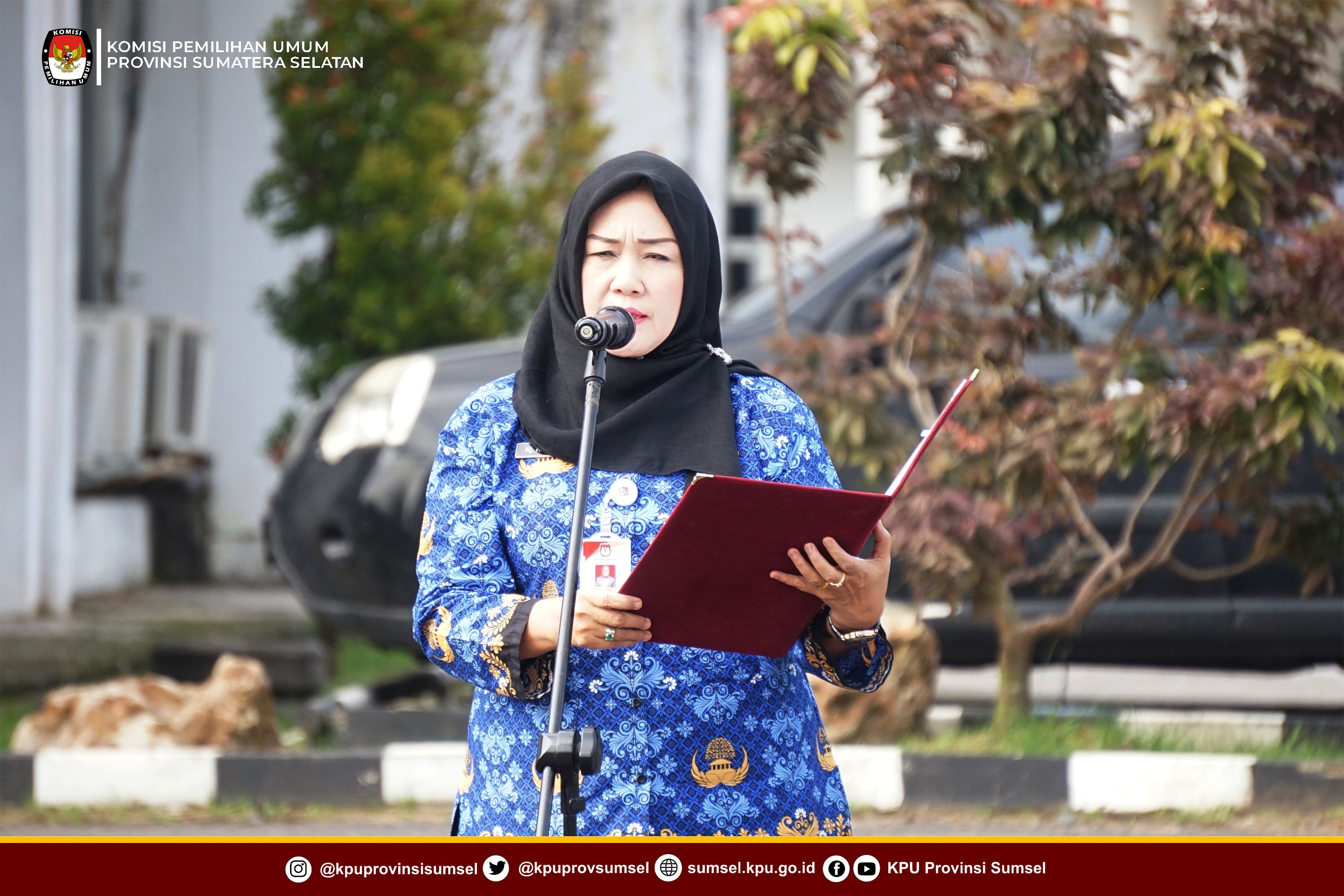 KPU Provinsi Sumatera Selatan melaksanakan apel rutin senin pagi di lingkungan sekretariat KPU Sumsel