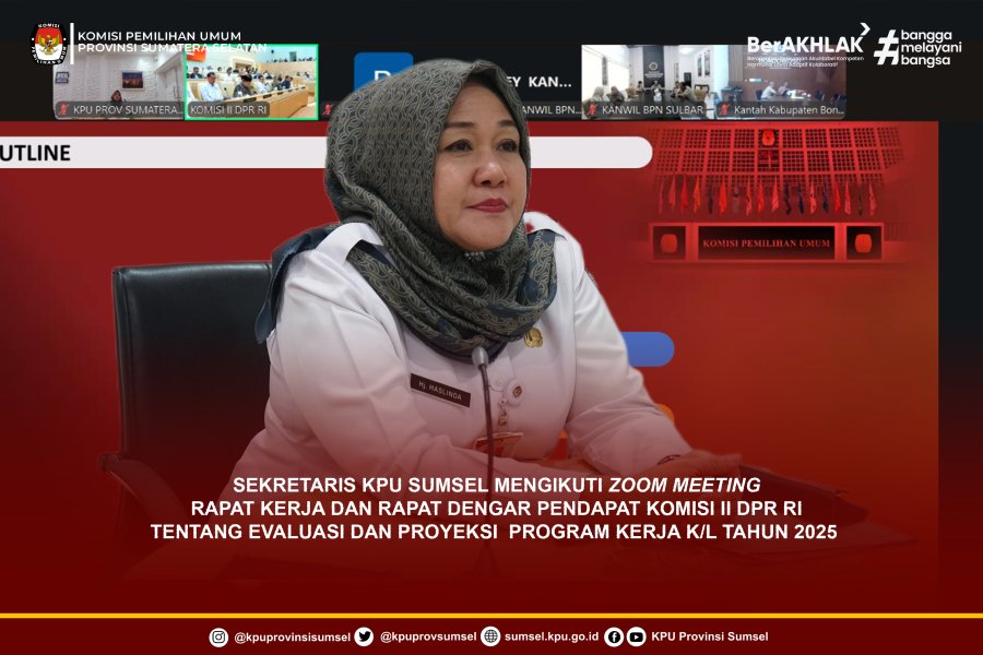 #Temanpemilih Sekretaris KPU Sumsel, Haslinda mengikuti zoom meeting Rapat Kerja dan Rapat Dengar Pendapat Komisi II DPR RI terkait Evaluasi dan Proyeksi Program Kerja Kementerian / Lembaga Tahun 2025. Senin (24/11/2025).