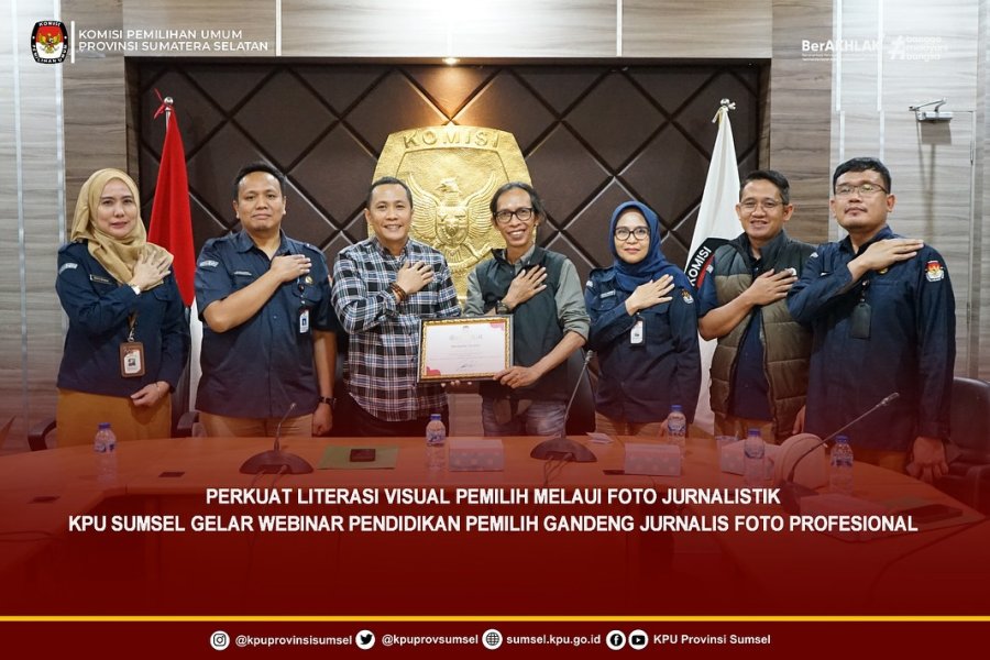 Menjawab tantangan tersebut KPU Sumsel menyelenggarakan webinar pendidikan pemilih menggandeng jurnalis foto profesional, Mushaful Imam bertajuk “Merekam Jejak Demokrasi Melalui Lensa Kamera”, Selasa (9 desember 2025).