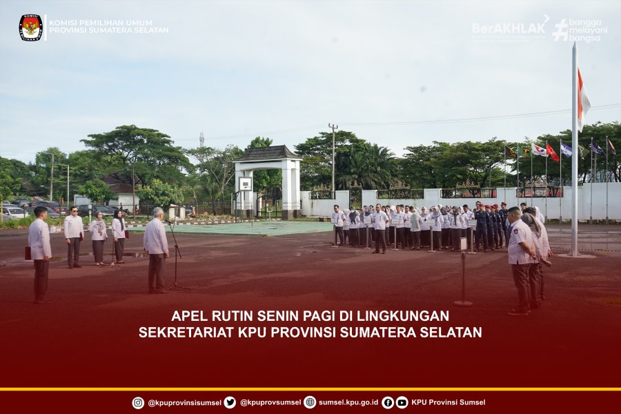 Bertugas sebagai pemimpin apel, Kepala Sub. Data dan Informasi KPU Sumsel, M. Rizki Andriantama, turut hadir Pejabat Manajerial, Pejabat Fungsional dan jajaran di lingkungan Sekretariat KPU Provinsi Sumatera Selatan.
