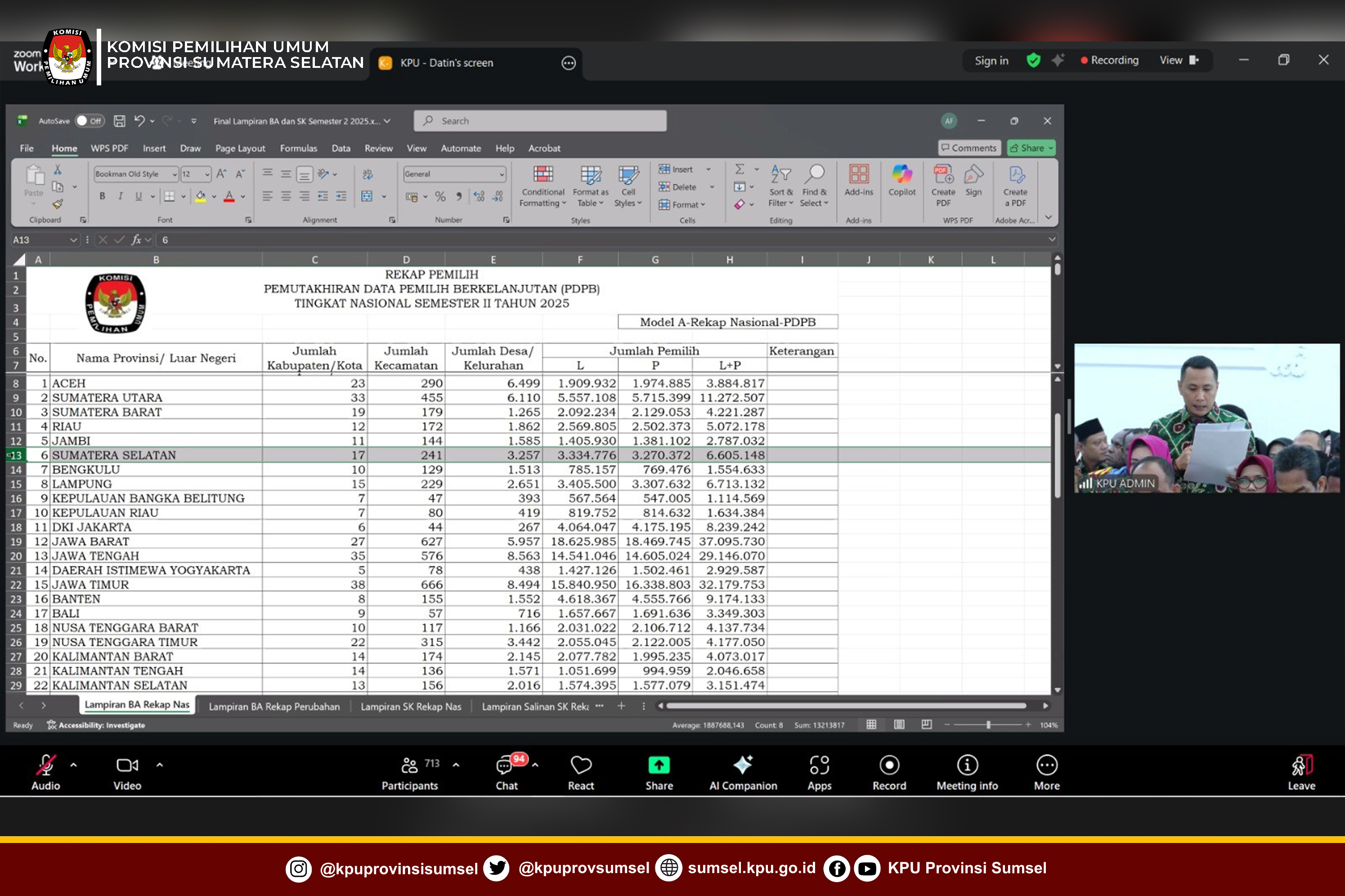 Ketua dan Anggota Divisi Perencanaan, Data dan Informasi KPU Sumsel Hadiri Rapat Pleno Terbuka Penetapan Rekapitulasi PDPB Tingkat Nasional