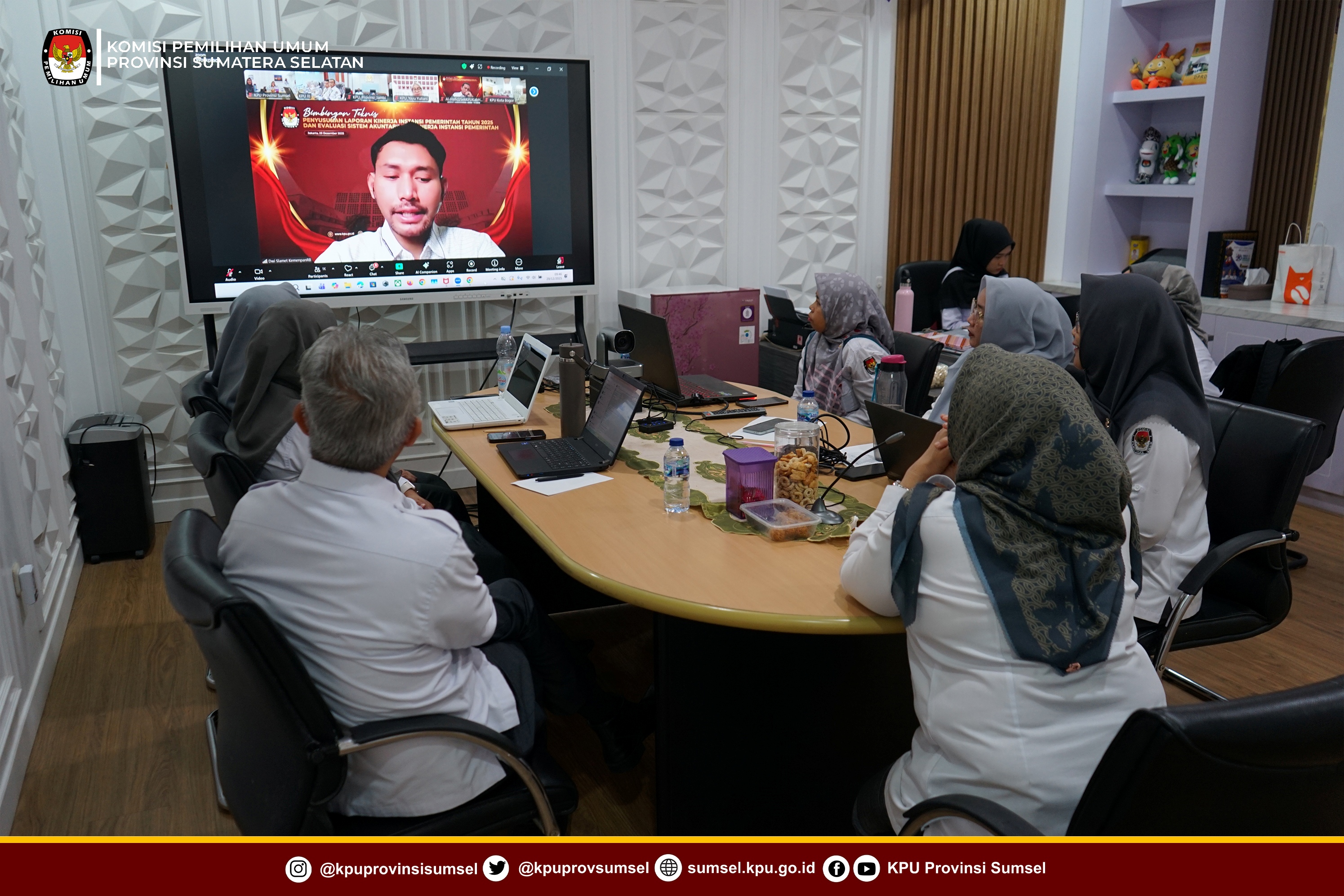 #Temanpemilih, Sekretaris KPU Sumsel, Haslinda hadiri Bimbingan Teknis Penyusunan Laporan Kinerja Instansi Pemerintah Tahun 2025 dan Evaluasi Sistem Akuntabilitas Kinerja Instansi Pemerintah melalui zoom meeting. Senin (29/12/2025).
