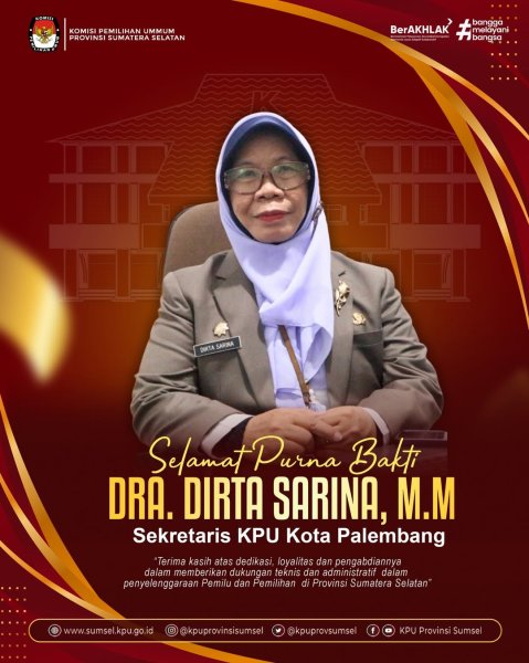 #Temanpemilih KPU Provinsi Sumatera Selatan mengucapkan selamat purna bakti kepada Sekretaris KPU Kota Palembang, Ibu Dra. Dirta Sarina, M.M