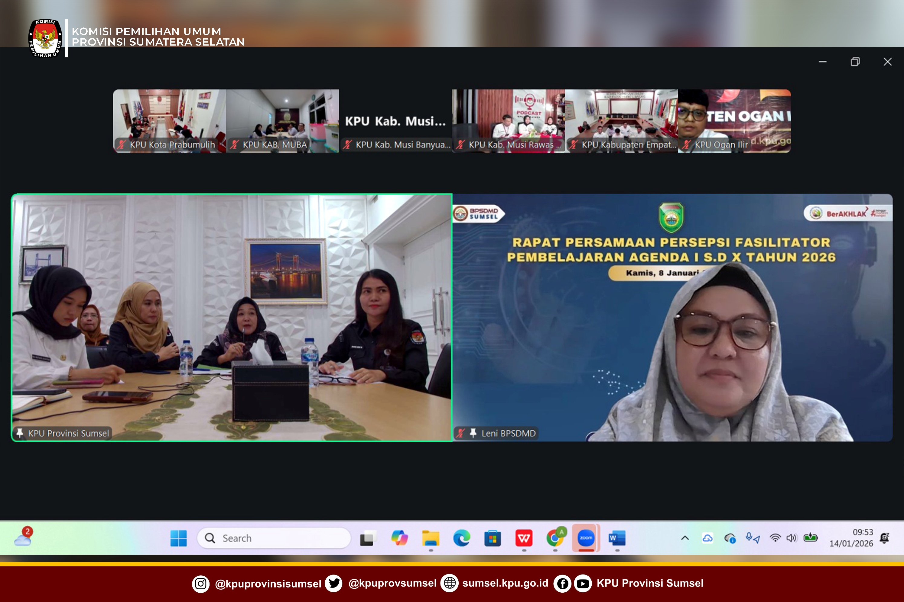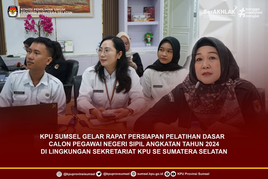 #Temanpemilih, KPU Provinsi Sumatera Selatan melaksanakan Rapat Persiapan Pelatihan Dasar Calon Pegawai Negeri Sipil ( Latsar CPNS) Angkatan Tahun 2024 di lingkungan Sekretariat KPU se Sumatera Selatan bersama Badan Pengembangan Sumber Daya Manusia Daerah Sumatera Selatan (BPSDMD Sumsel), Rabu (14/1/2026).
