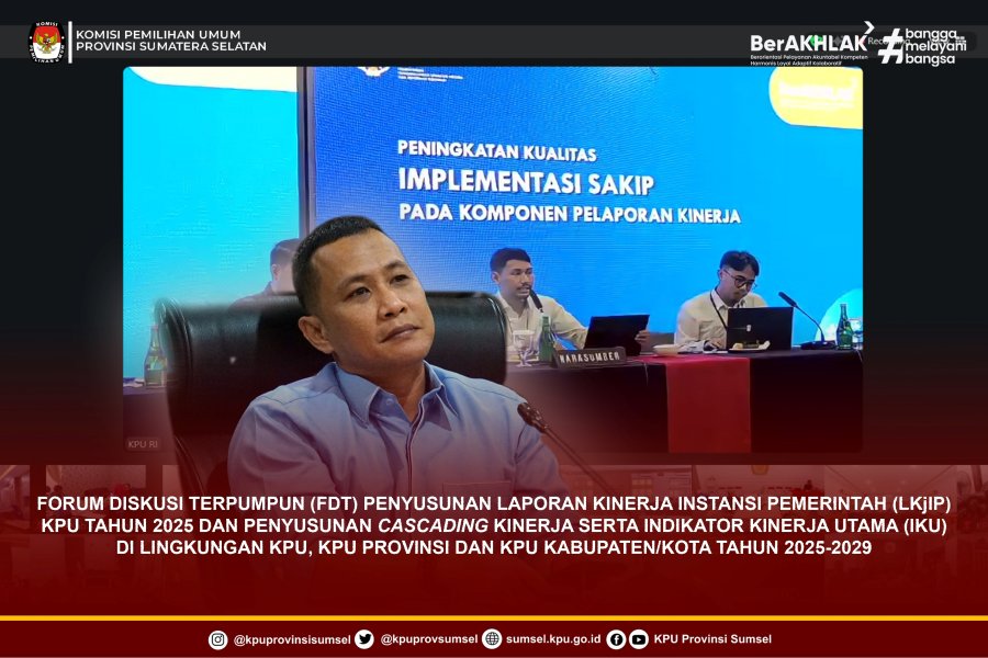 #Temanpemilih, Ketua bersama Sekretaris KPU Sumsel, Andika Pranata Jaya dan Haslinda hadiri Forum Diskusi Terpumpun (FDT) Penyusunan Laporan Kinerja Instansi Pemerintah (LKjIP) KPU Tahun 2025 dan Penyusunan Cascading Kinerja Serta Indikator Kinerja Utama (IKU) KPU, KPU Provinsi dan KPU Kabupaten/Kota Tahun 2025-2029 melalui zoom meeting. Selasa (27/1/2025).