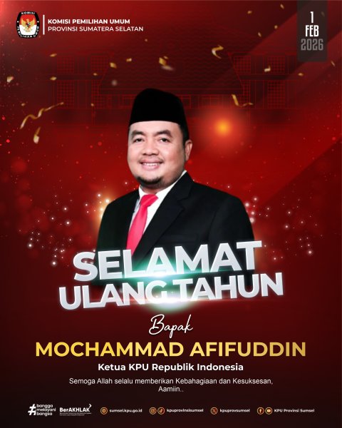 #Temanpemilih KPU Provinsi Sumatera Selatan mengucapkan selamat ulang tahun kepada Ketua Komisi Pemilihan Umum Republik Indonesia, Bapak Mochammad Afifuddin