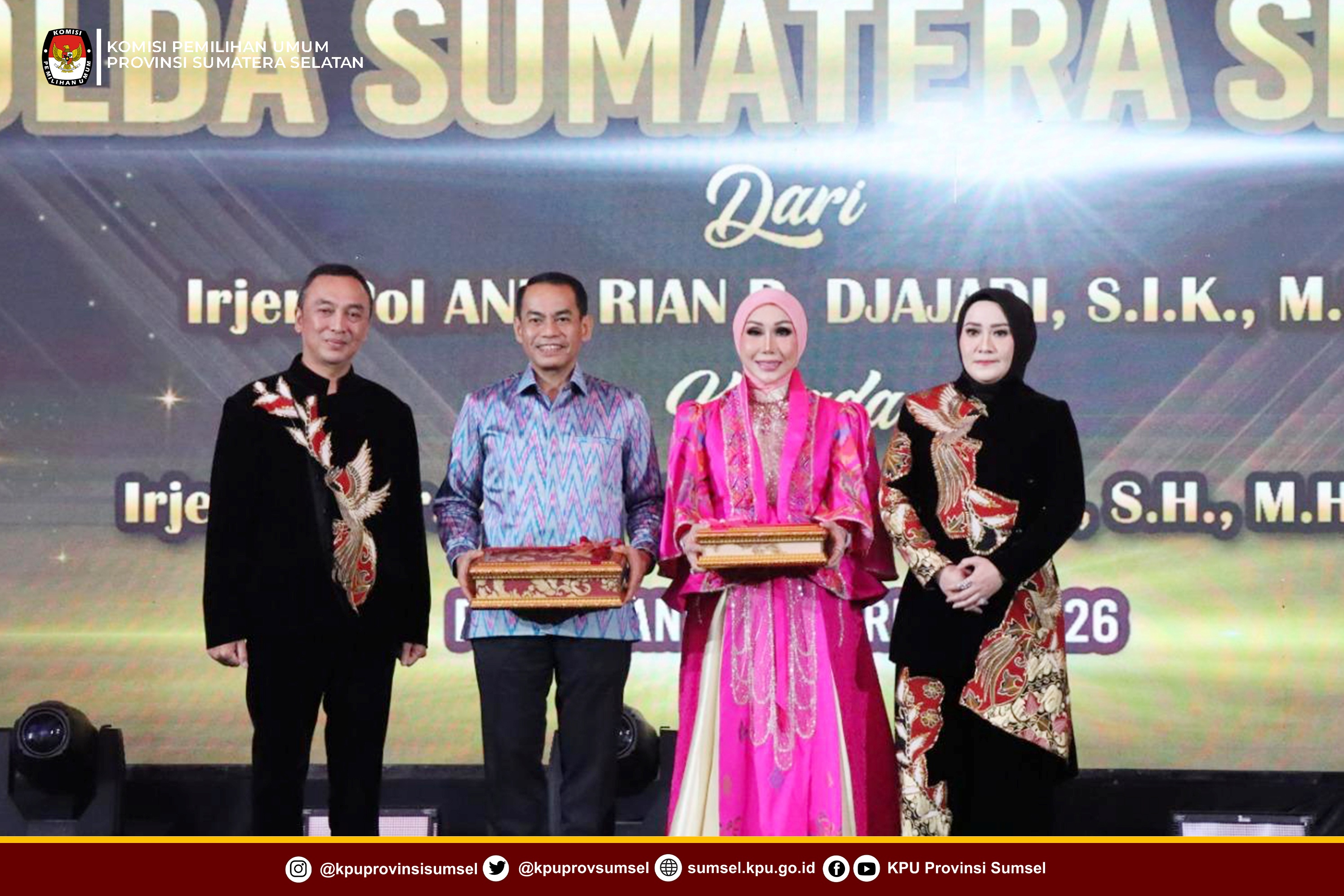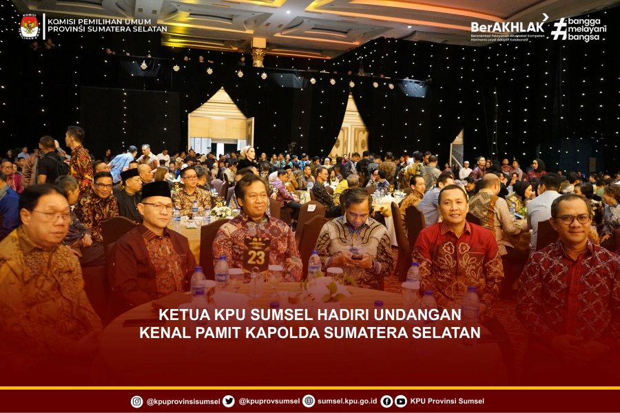 #Temanpemilih, Ketua KPU Sumsel, Andika Pranata Jaya menghadiri undangan Kenal Pamit Kapolda Sumsel. Dari Irjen Pol. Andi Rian R. Djajadi, S.I.K., M.H. Kepada Irjen Pol. DR. Sandi Nugroho, S.I.K., S.H., M.Hum. Bertempat di The Sultan Convention Center, Minggu (8/2/2026).