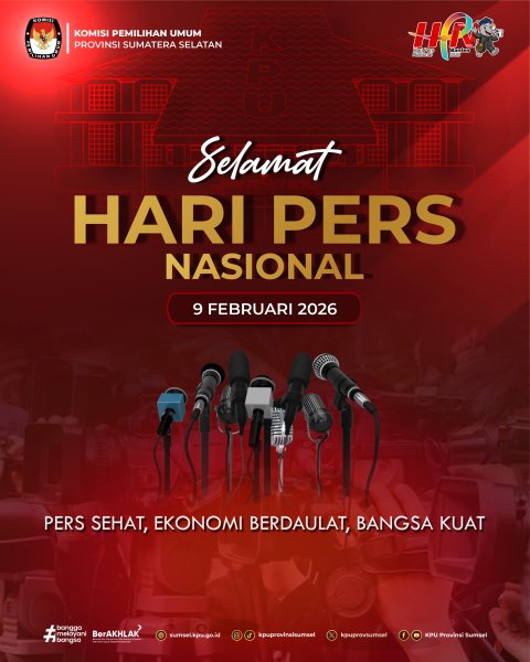 #Temanpemilih. Segenap Jajaran Komisi Pemilihan Umum Provinsi Sumatera Selatan mengucapkan Selamat Hari Pers Nasional Tahun 2026.