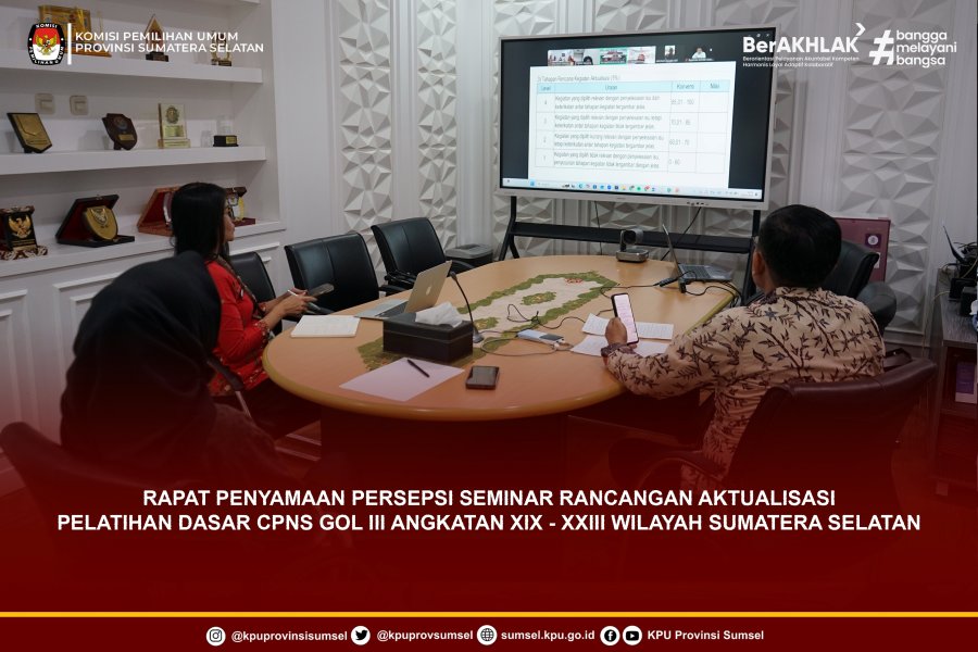 #Temanpemilih, KPU Sumsel mengikuti Rapat Penyamaan Persepsi Seminar Rancangan Aktualisasi Pelatihan Dasar CPNS gol III Angkatan XIX - XXIII bersama BPSDMD Sumsel melalui Zoom Meeting. Jum'at (20/2/2026).