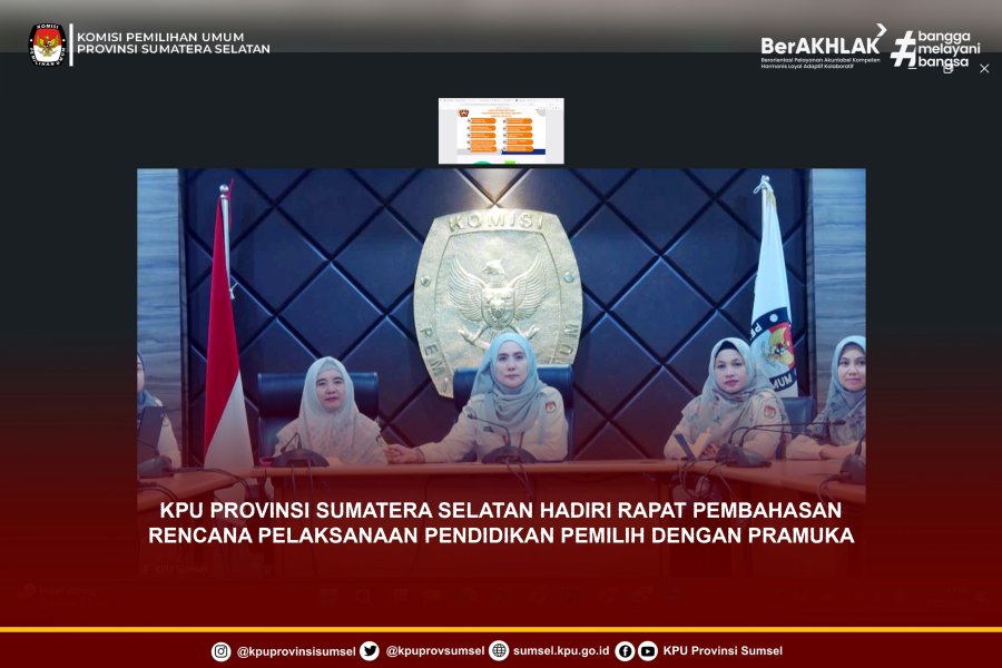 #Temanpemilih, KPU Provinsi Sumatera Selatan hadiri Rapat Pembahasan Rencana Pelaksanaan Pendidikan Pemilih dengan Pramuka melalui Zoom Meeting. Senin (23/2/2026).