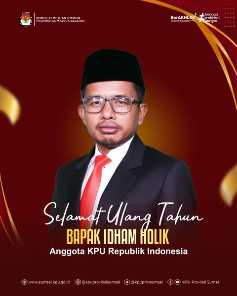 #Temanpemilih KPU Provinsi Sumatera Selatan mengucapkan selamat ulang tahun kepada Anggota KPU Republik Indonesia, Bapak Idham Holik