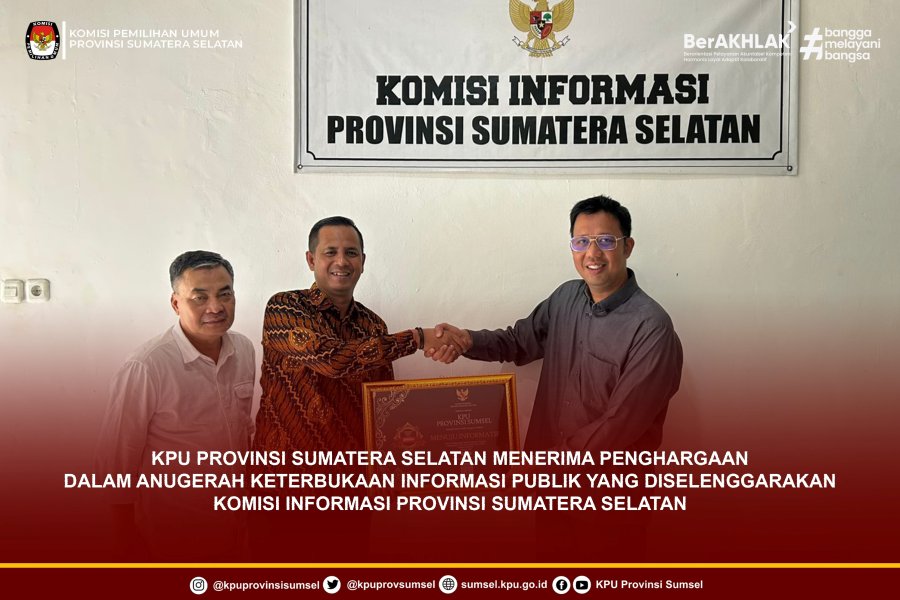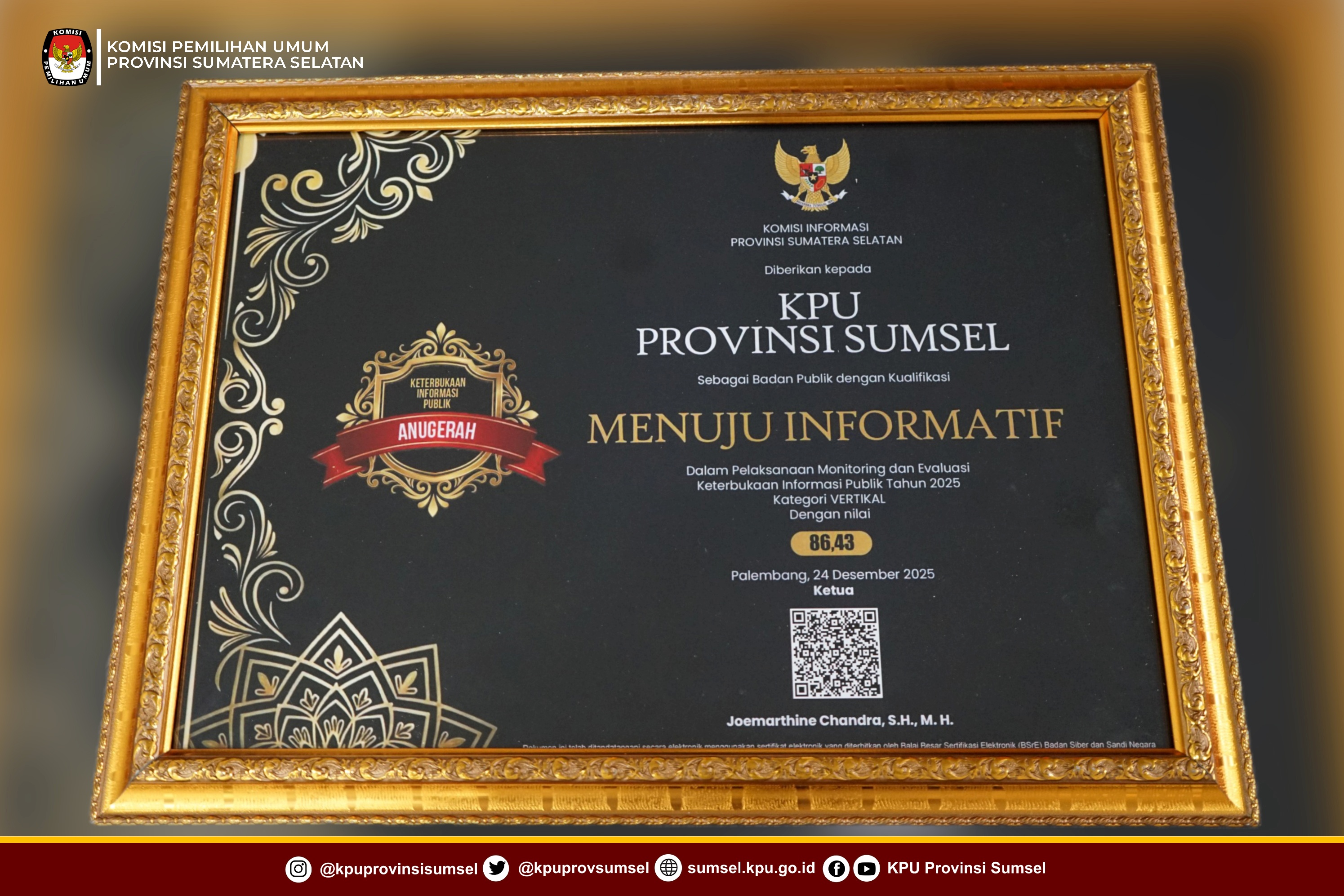 #Temanpemilih, KPU Sumsel raih penghargaan sebagai Badan Publik dengan kualifikasi Menuju Informatif kategori Vertifkal.