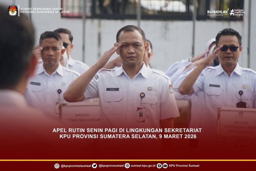 #Temanpemilih Sekretariat KPU Provinsi Sumatera Selatan melaksanakan apel rutin senin pagi, 9 Maret 2026.