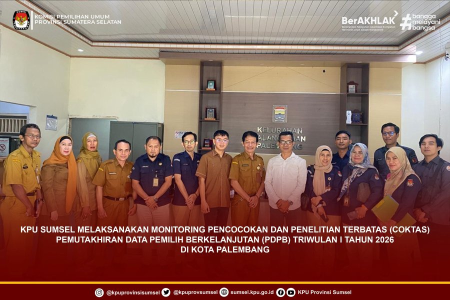 KPU Sumsel melaksanakan monitoring pencocokan dan penelitian terbatas (Coktas) Pemutakhiran Data Pemilih Berkelanjutan Triwulan I Tahun 2026