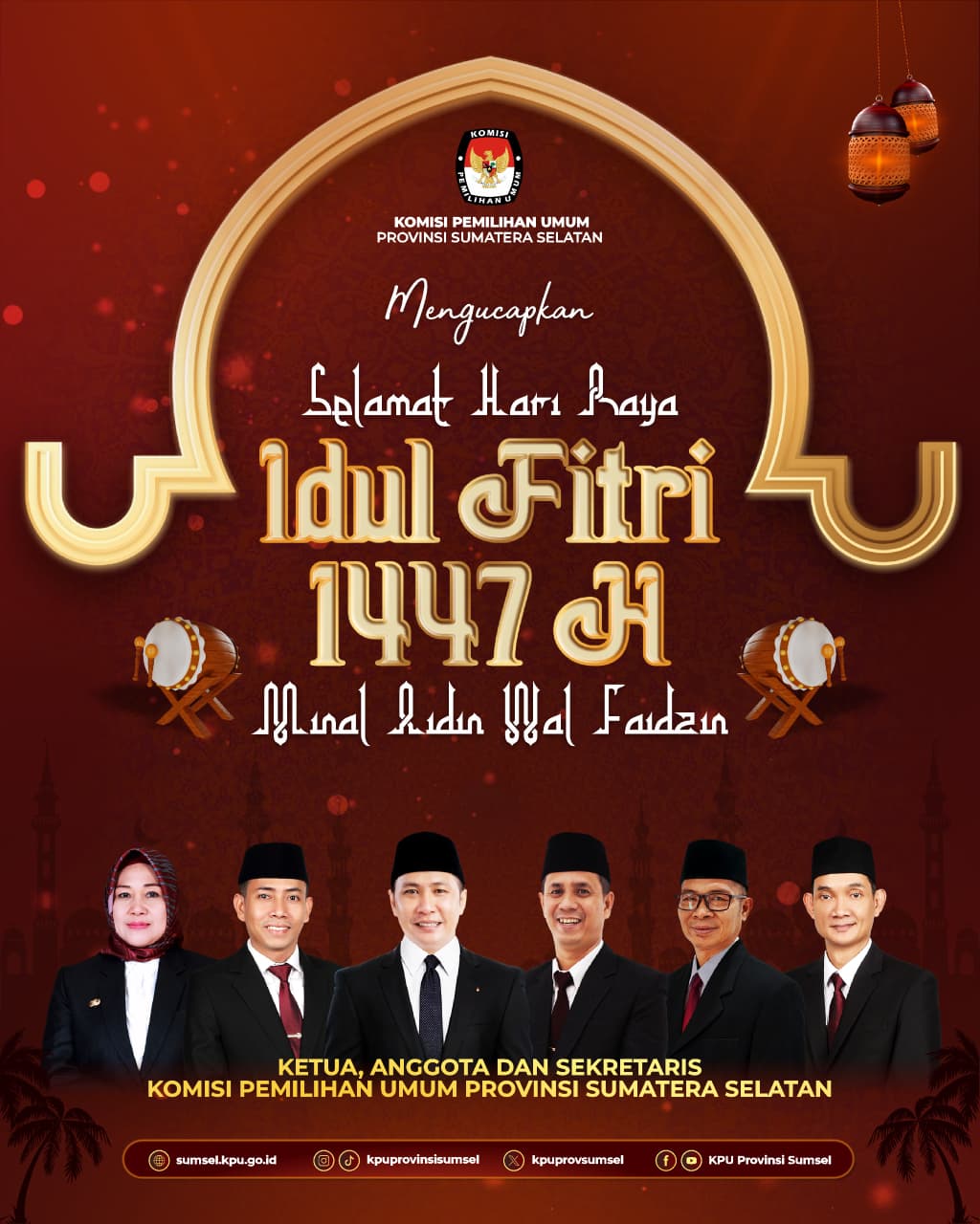#Temanpemilih, Segenap Jajaran Komisi Pemilihan Umum Provinsi Sumatera Selatan mengucapkan Selamat Hari Raya Idul Fitri 1 Syawal 1447 H / 2026 M.