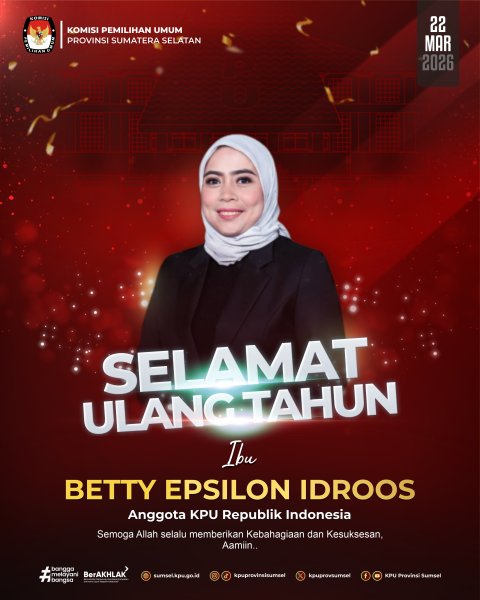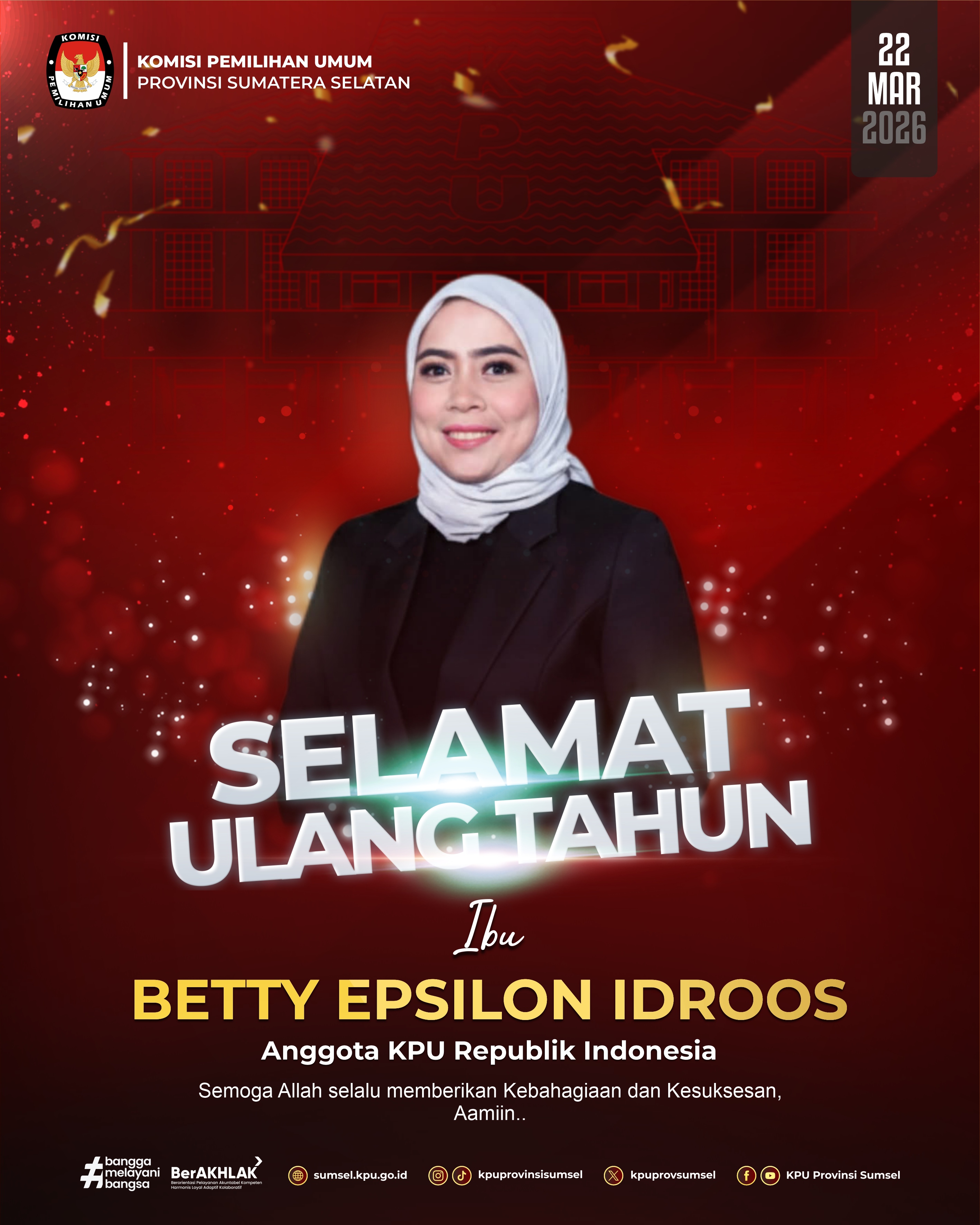 #Temanpemilih KPU Provinsi Sumatera Selatan mengucapkan selamat ulang tahun kepada Anggota Komisi Pemilihan Umum Republik Indonesia, Ibu Betty Epsilon Idroos.