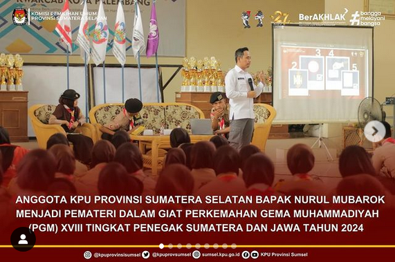 #Temanpemilih, Anggota KPU Provinsi Sumatera Selatan Bapak Nurul Mubarok Menjadi Pemateri dalam Giat Perkemahan Gema Muhammadiyah (PGM) XVIII Tingkat Penegak Sumatera dan Jawa Tahun 2024