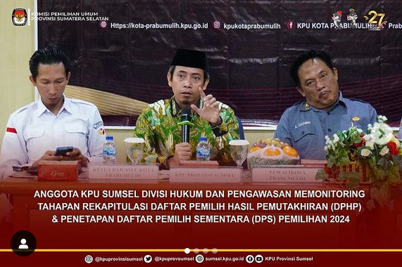 #Temanpemilih, Anggota KPU Sumsel Divisi Hukum dan Pengawasan, Bapak Nurul Mubarok didampingi Pejabat Fungsional Ahli Madya dan Kasubbag Hukum memonitoring rekapitulasi Daftar Pemilih Hasil Pemutakhiran (DPHP) dan penetapan Daftar Pemilih Sementara (DPS) Kota Prabumulih, Minggu (11/8/2024).