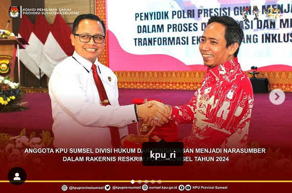 #Temanpemilih, Anggota KPU Sumsel Divisi Hukum dan Pengawasan, Bapak Nurul Mubarok, menjadi narasumber dalam “Rakernis Reskrim Polda Sumsel Tahun 2024” yang di selenggarakan oleh Ditreskrimum Polda Sumsel di Auditorium Gedung Presisi Mapolda Sumsel, Kamis (25/7/2024).