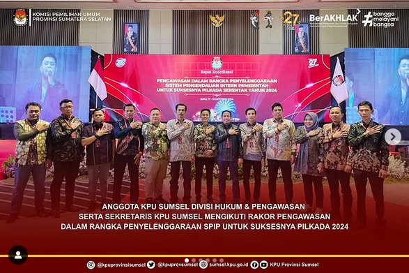 #Temanpemilih Anggota KPU Sumsel Divisi Hukum dan Pengawasan, Bapak Nurul Mubarok serta Sekretaris KPU Sumsel, Bapak Eko Iswantoro mengikuti rapat koordinasi pengawasan dalam rangka penyelenggaraan Sistem Pengendalian Intern Pemerintah untuk suksesnya Pilkada serentak tahun 2024 pada tanggal 17 sampai 19 Oktober 2024.