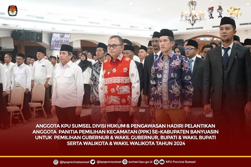 #Temanpemilih, #Temanpemilih Anggota KPU Sumsel Divisi Hukum dan Pengawasan, Bapak Nurul Mubarok menghadiri pelantikan Anggota Panitia Pemilihan Kecamatan (PPK) se-Kabupaten Banyuasin untuk Pemilihan Gubernur dan Wakil Gubernur, Bupati dan Wakil Bupati serta Walikota dan Wakil Walikota tahun 2024, Kamis (16/5/2024).
