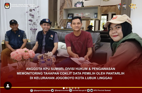 Anggota KPU Sumsel Divisi Hukum & Pengawasan Memonitoring Tahapan Coklat Data Pemilih Oleh Pantarlih Di Kelurahan Jogoboyo Kota Lubuk Linggau