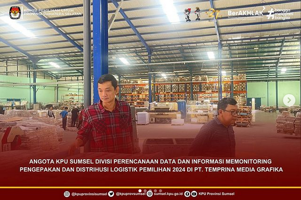 Monitoring ini dilakukan guna memastikan pengadaan logistik dan perlengkapan pemungutan suara Pemilihan 2024 di Sumsel tepat jenis, tepat jumlah, tepat kualitas, tepat waktu, tepat sasaran dan tepat biaya.