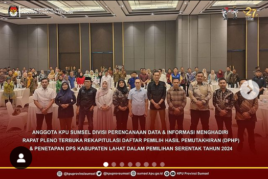 #Temanpemilih, Anggota KPU Sumsel Divisi Perencanaan Data dan Informasi, Bapak Prahara Andri Kusuma memonitoring rapat pleno terbuka rekapitulasi Daftar Pemilih Hasil Pemutakhiran (DPHP) dan penetapan Daftar Pemilih Sementara (DPS) Kabupaten Lahat dalam Pemilihan Serentak tahun 2024, Minggu (11/8/2024).
