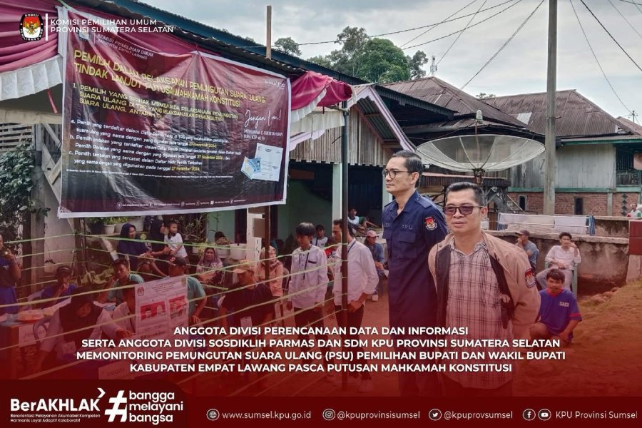 #Temanpemilih Anggota KPU Sumsel Divisi Perencanaan Data dan Informasi, Bapak Abu Yamin serta Anggota Divisi Sosdiklih Parmas dan SDM, Bapak Prahara Andri Kusuma memonitoring pelaksanaan Pemungutan Suara Ulang (PSU) Pemilihan Bupati dan Wakil Bupati Kabupaten Empat Lawang tahun 2024 pasca putusan Mahkamah Konstitusi, Sabtu (19/4/2025).