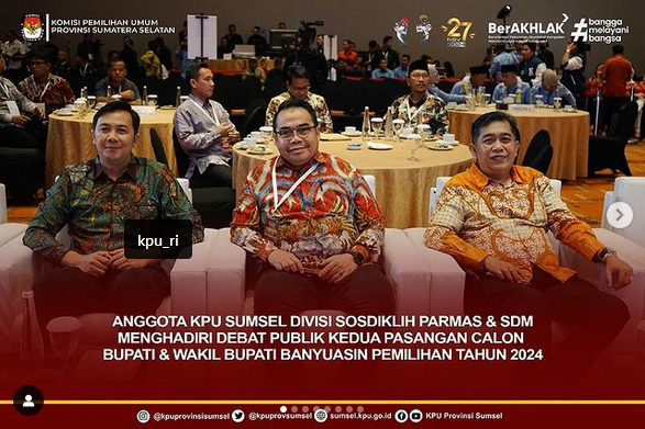 Anggota KPU Sumsel Divisi Sosdiklih Parmas dan SDM menghadiri debat publik kedua pasangan calon Bupati dan Wakil Bupati Banyuasin Pemilihan tahun 2024